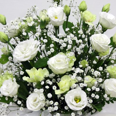トルコキキョウとカスミ草の清楚な感じのアレンジメント